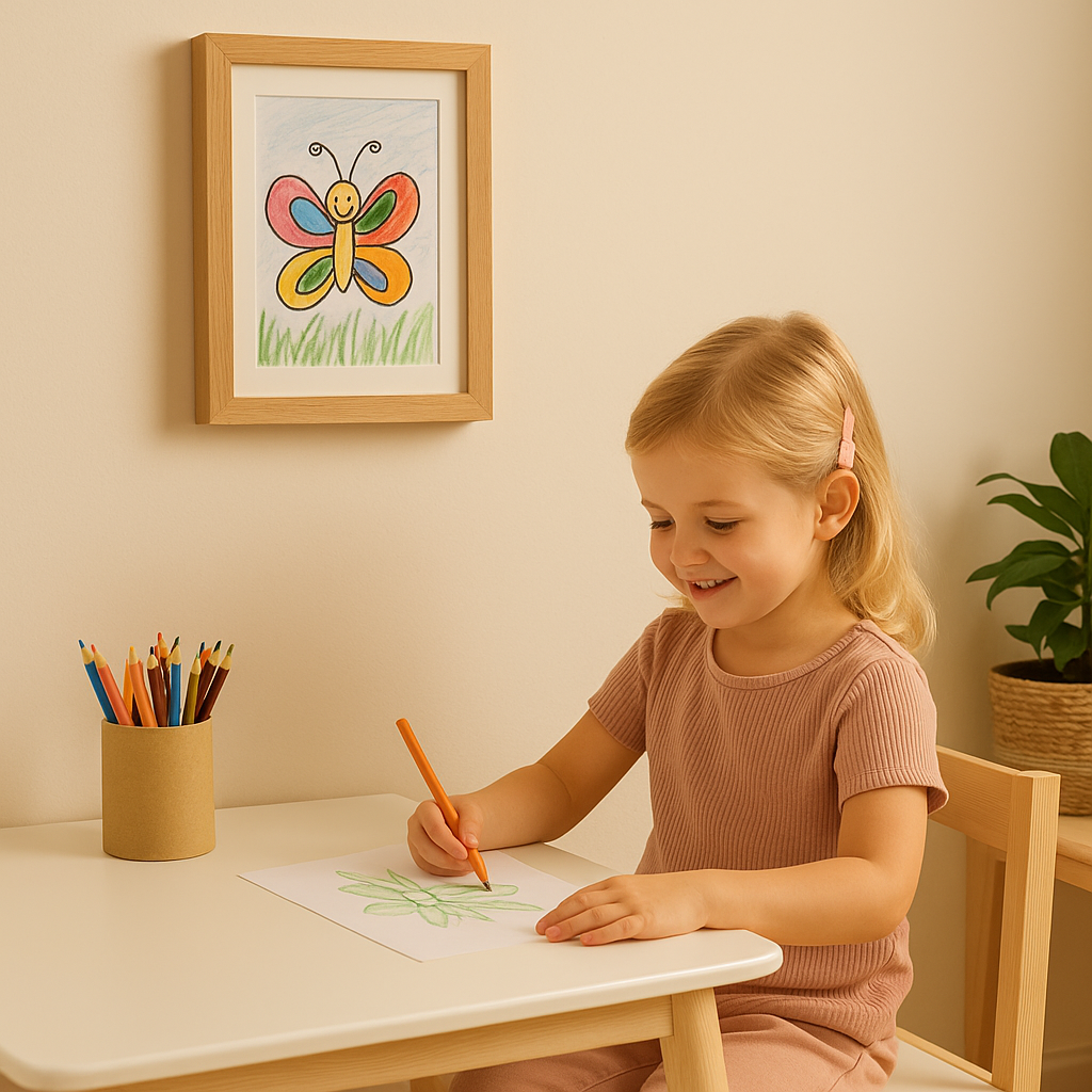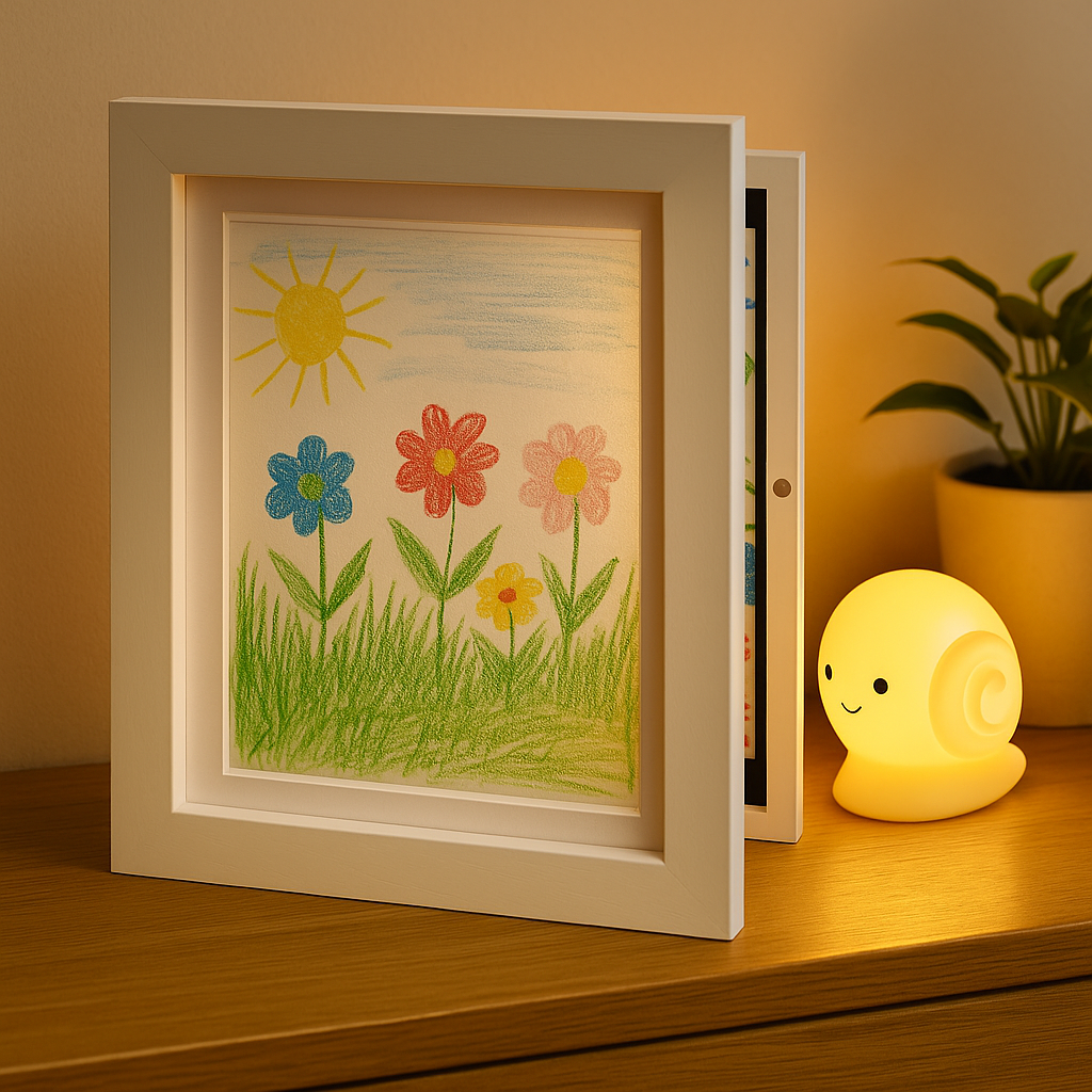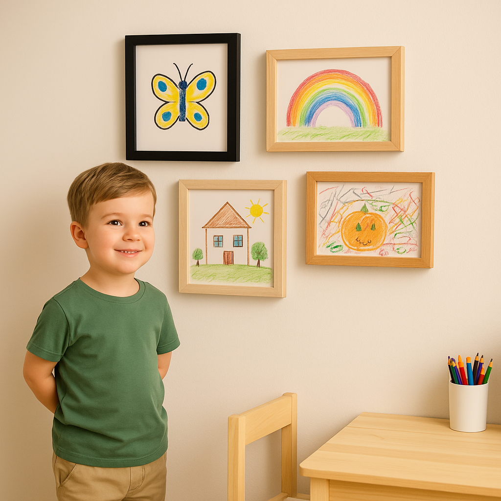 Jedes Bild, jede Zeichnung, jedes Kunstwerk verdient einen besonderen Platz. Der Rahmen schenkt deinem Kind das Gefühl, dass seine Kreativität wichtig ist und gesehen wird. 🌟